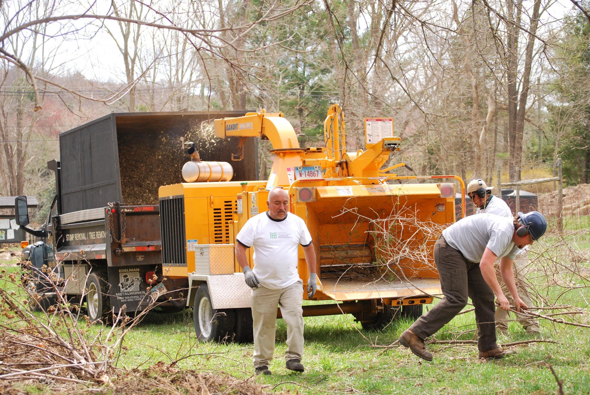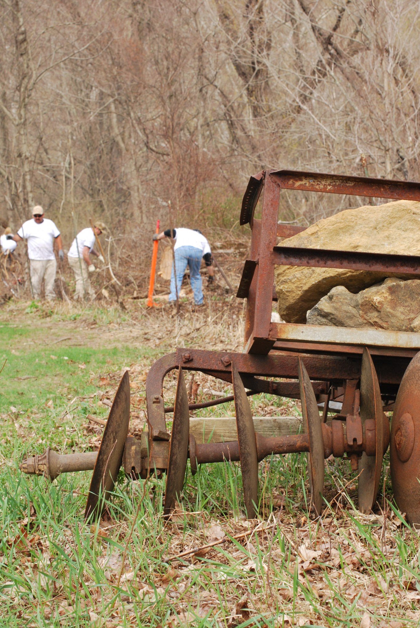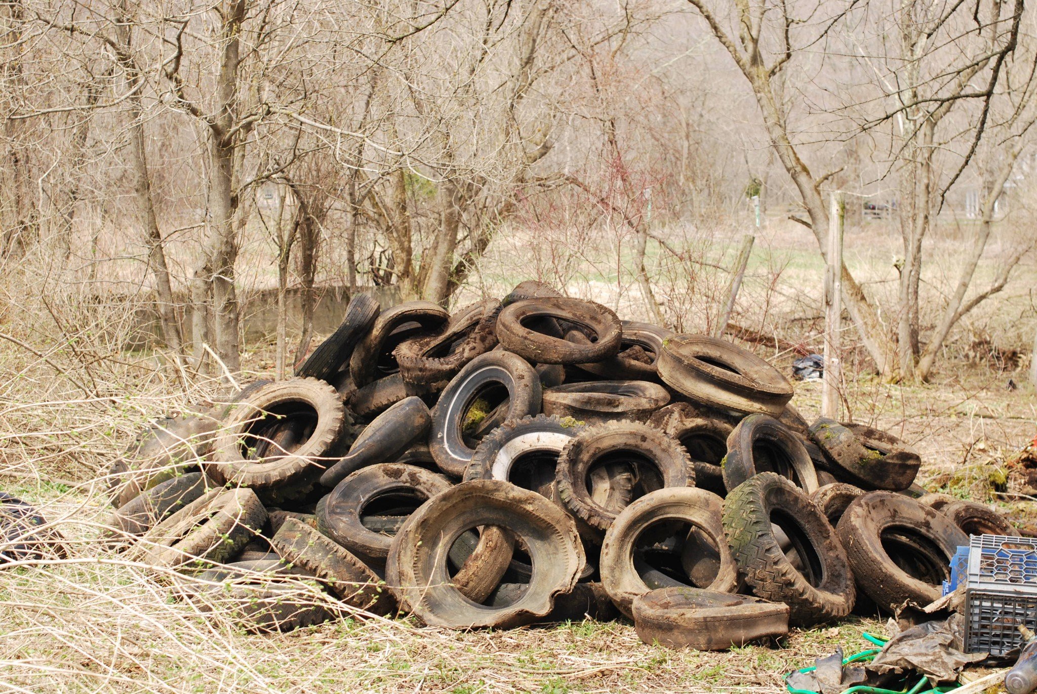 Volunteers cleared invasive plant material and refuse, including approximately 100 tires found in an overgrown wooded area of the public land trust.