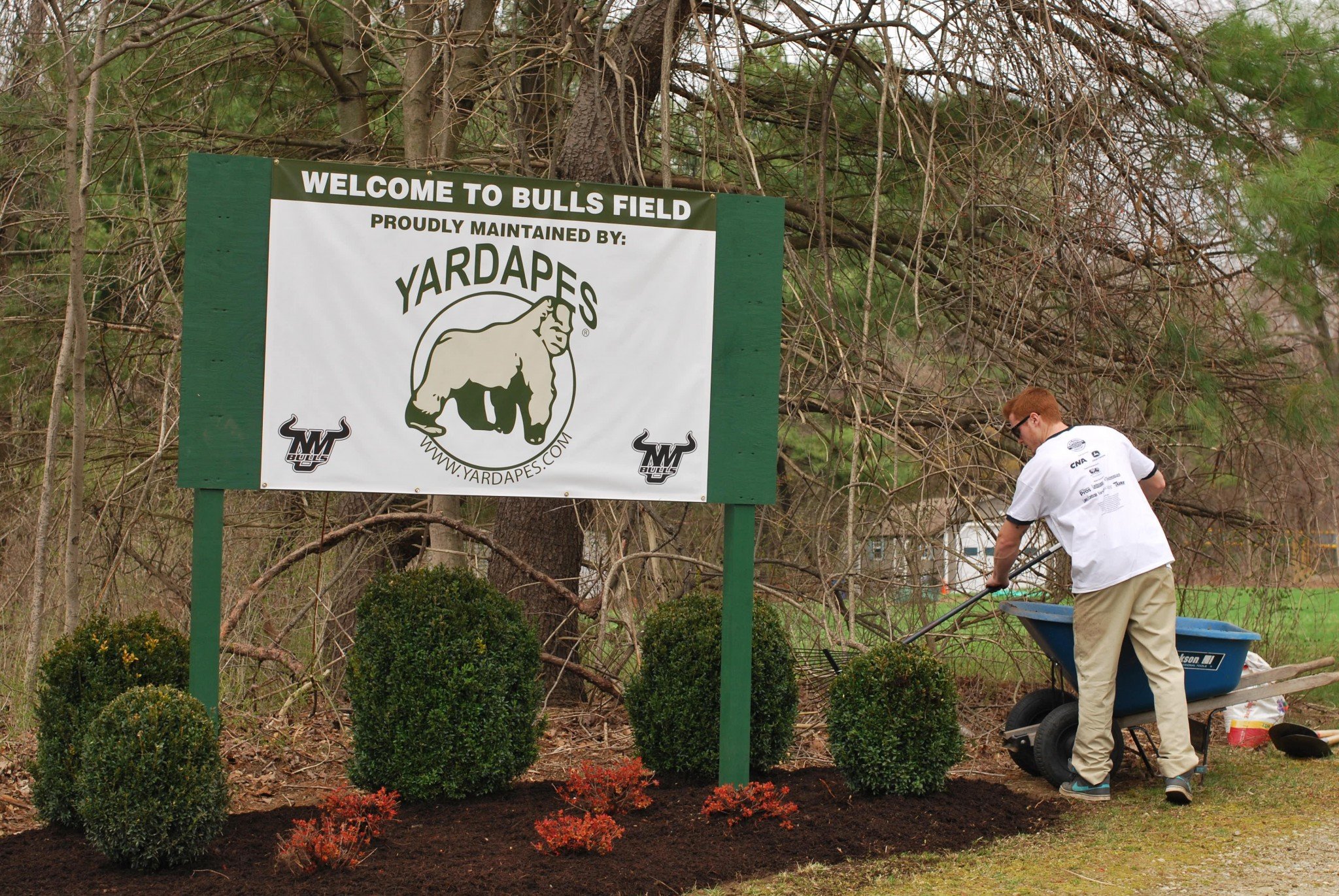 Installation of new landscaping, weeding and mulching of existing plant beds, over-seeding and fertilizing of 80,000 sq. ft. football field.