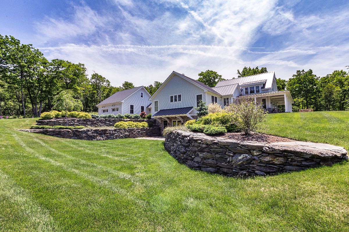 Typical freestanding stone “farmer’s walls” used for property outlines or to enhance the entrance to a property will often be a drystrack stone wall. The stones are stacked on top of each other and held together by their weight and shape. These walls would be limited to four feet or less in height and can be used for light retaining purposes. This type of wall is also often used for garden accents and embedded stairs.