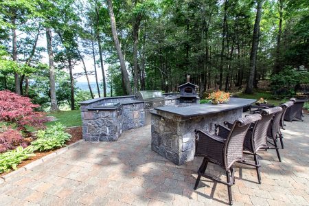 Spring and Summer wouldn’t be the same without the backyard tradition of cooking (depending on your definition), a few tasty cold beverages, and deep conversation around the fire. Everyone has their own way to go about it, and some are content with the standard and time-tested rusty charcoal grill, and perhaps a few New England meteorites (i.e small boulders) arranged in a circle for roasting marshmallows. Perhaps you prefer this minimalist sentiment when it comes to things, but have you seen some of the amazing permanent kitchens being built? In some cases they rival an indoor setup, all the while giving you the freedom to experiment with little worry of setting off the smoke alarm.