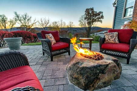 You may not have heard of Fire Boulder yet. YardScapes is the exclusive dealer of these awesome monoliths, which come in three main styles. The first is the most “natural” and consists of a carefully selected and shaped boulder. The center of these are skillfully carved out to accommodate a traditional wood-burning fire, or your preferred solid fuel. This is the type we have in our Tipi behind World Headquarters, chosen for it’s simplicity, as well as the authentic feel in a traditionally built structure. The second, and most popular is also a single stone, this time plumbed with natural gas or propane fittings. The burner can be topped with lava rock, or any other approved media for a truly unique and clean-burning gathering point. The last type combines gas fueled flame and water for a truly unique audio and visual effect. When the flame is off, the fountain portion can continue to run and thus provide a soothing trickle.